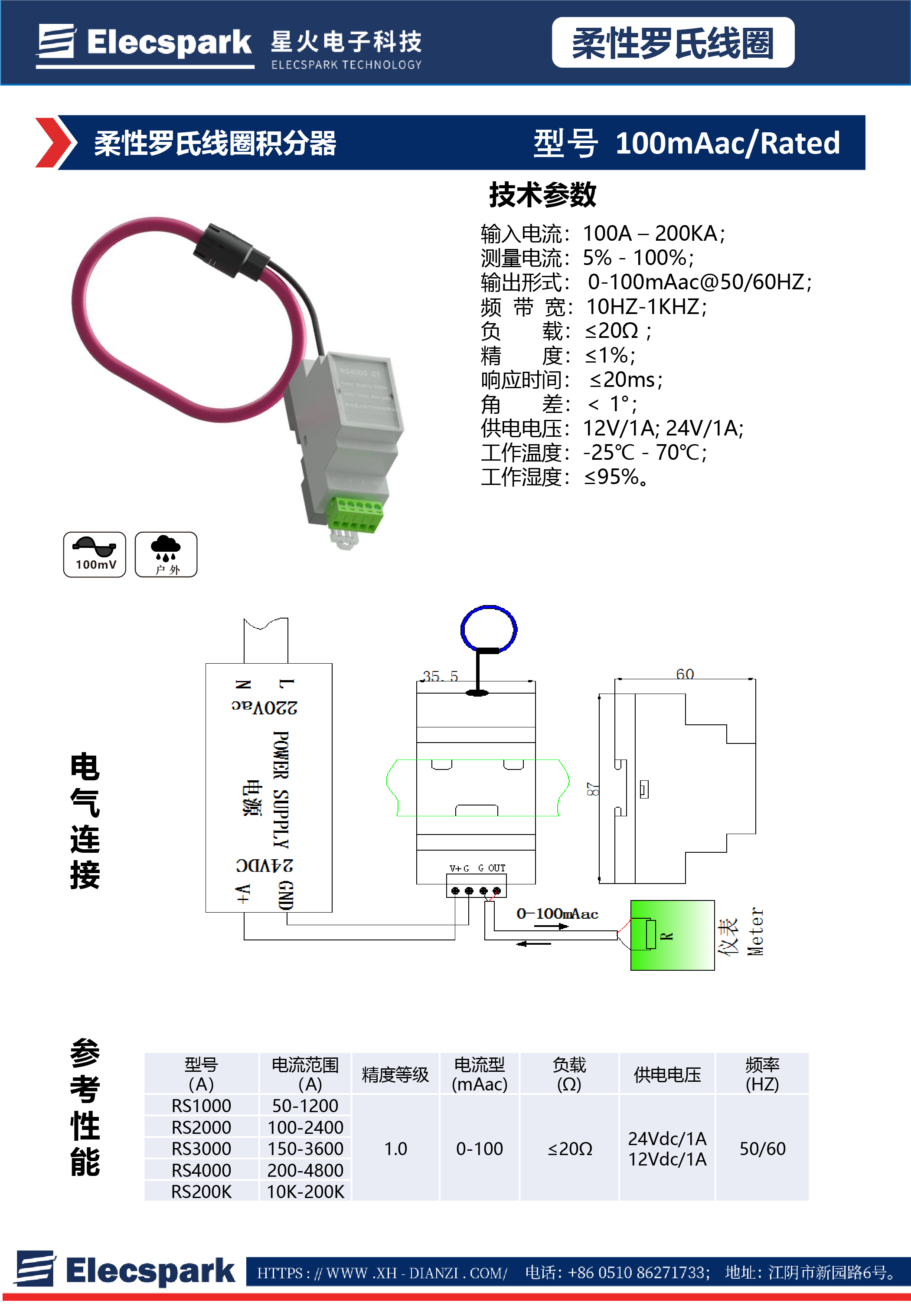 柔性羅氏線圈積分器100mAac/Rated(三相)