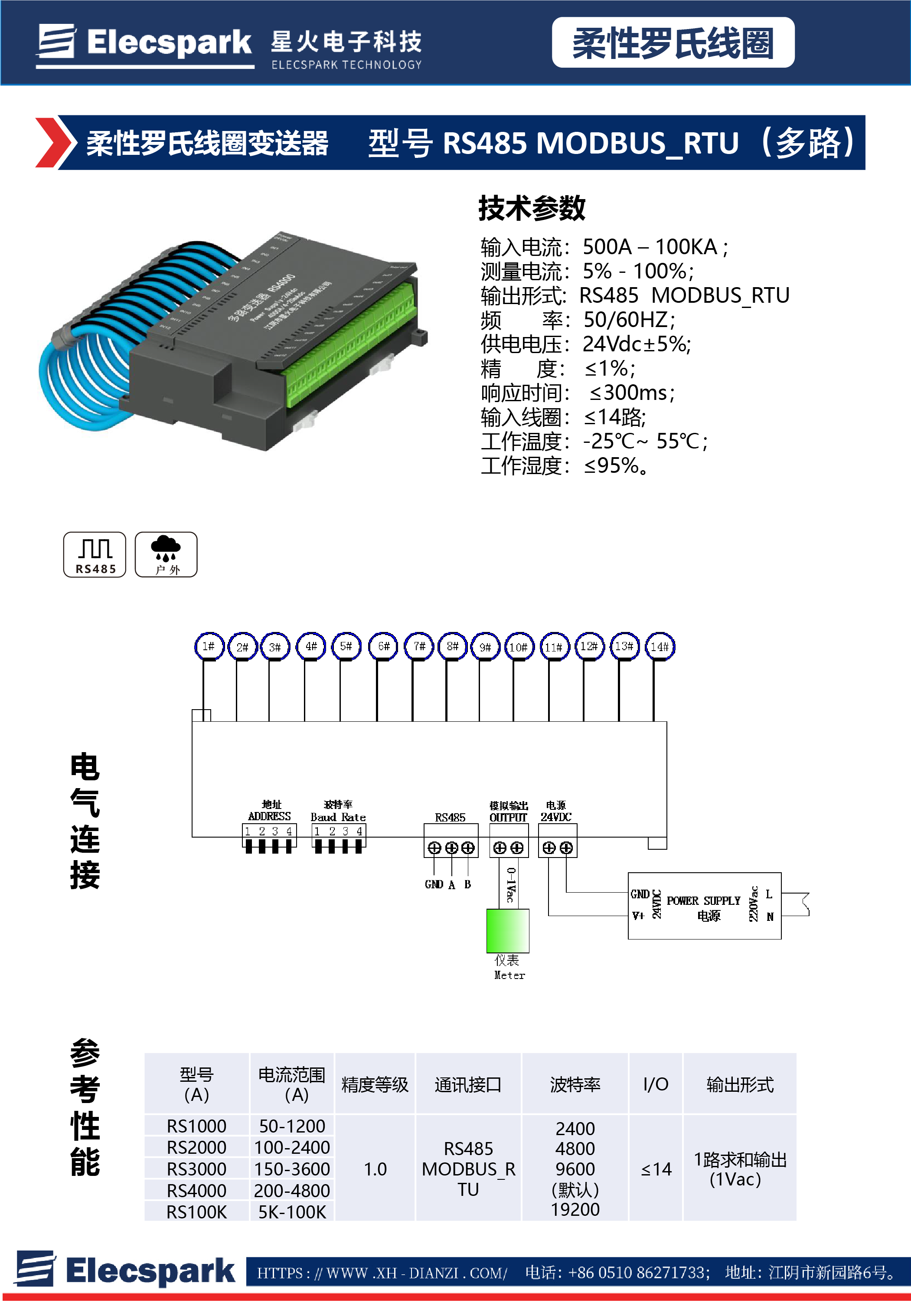 柔性羅氏線圈變送器RS485 MODBUS_RTU(多路)